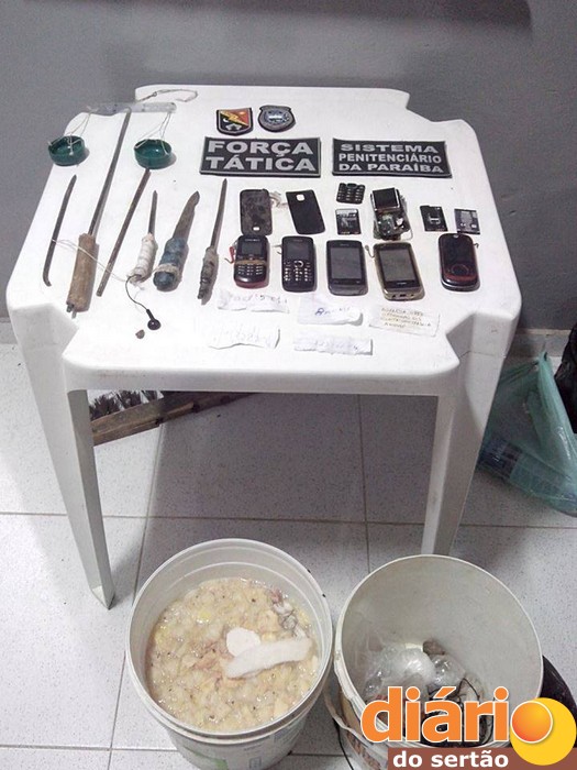 Os agentes comunicaram ao diretor do estabelecimento prisional, Jailson Santos, que solicitou a “Força Tática” e após revista foram encontradas: 01 carregador de celular, 09 fones de ouvido, 03 baterias de celular, 01 balança de precisão de fabricação artesanal, 06 celulares, 03 espetos de fabricação artesanal, 01 faca de fabricação artesanal, Várias peças e componentes eletrônicos de aparelhos celulares, 01 balde com aproximadamente 15 litros de um composto de frutas em fermentação para a fabricação artesanal de cachaça, além de anotações sobre números de celulares e contas bancárias.